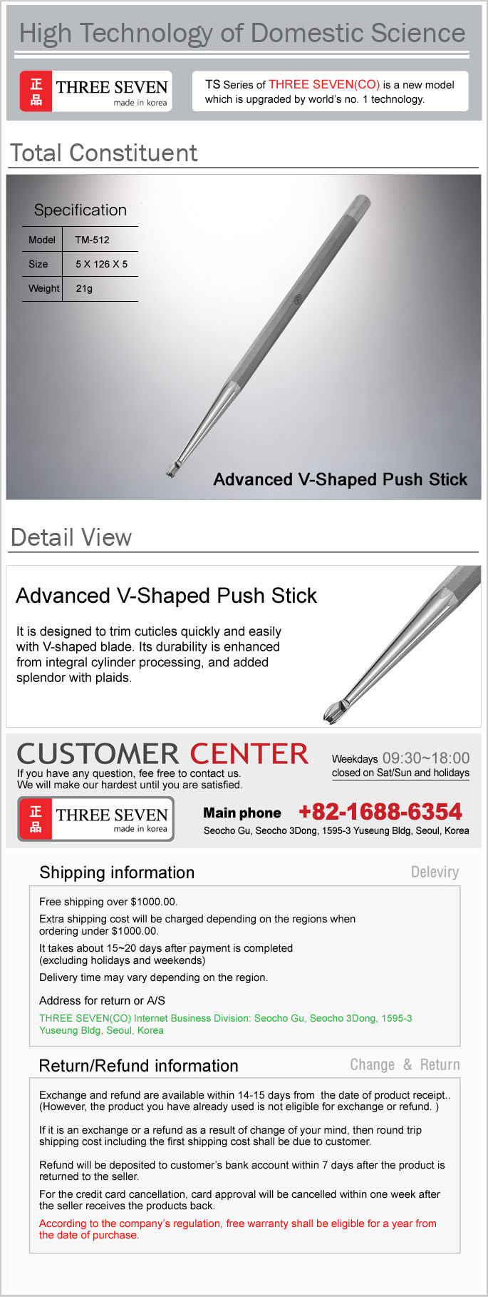 3.   Refund will be deposited to customer¡¯s bank account within 7 days after the product is returned to the seller.