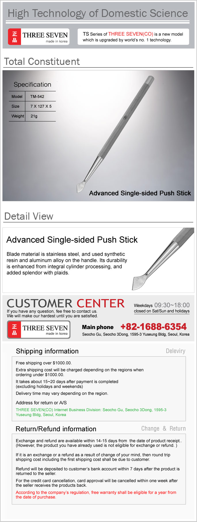 3.   Refund will be deposited to customer¡¯s bank account within 7 days after the product is returned to the seller.